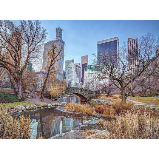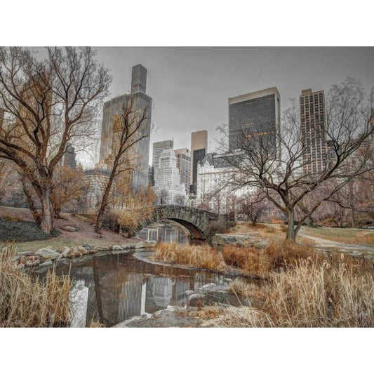 Central park with Manhattan skyline-New York Black Modern Wood Framed Art Print with Double Matting by Frank, Assaf