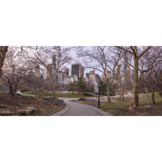 Pathway through Central park, New York Black Modern Wood Framed Art Print with Double Matting by Frank, Assaf