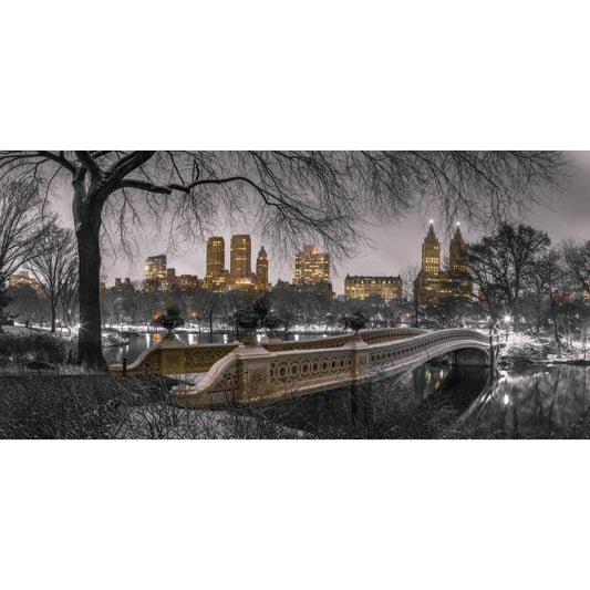 Central park with Manhattan skyline, New York Black Modern Wood Framed Art Print with Double Matting by Frank, Assaf