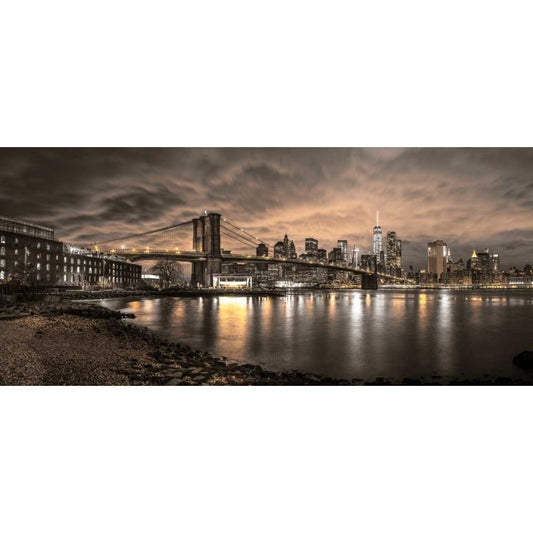 Manhattan bridge and New York city skyline Black Modern Wood Framed Art Print with Double Matting by Frank, Assaf