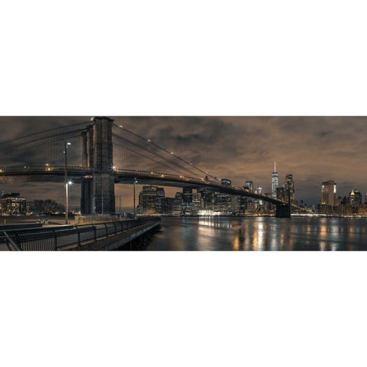 Brooklyn Bridge-New York Black Modern Wood Framed Art Print with Double Matting by Frank, Assaf