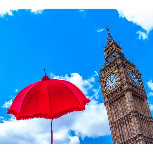 Big Ben with Red Umbrella, London, UK Black Modern Wood Framed Art Print with Double Matting by Frank, Assaf