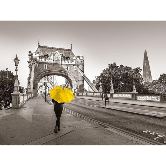 Lady with a yellow umbrella, Tower bridge, London Black Modern Wood Framed Art Print with Double Matting by Frank, Assaf