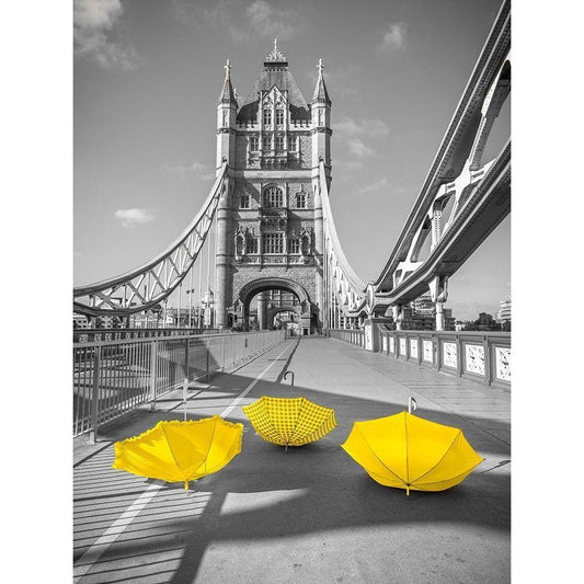 Yellow umbrellas, Tower bridge, London Black Modern Wood Framed Art Print with Double Matting by Frank, Assaf