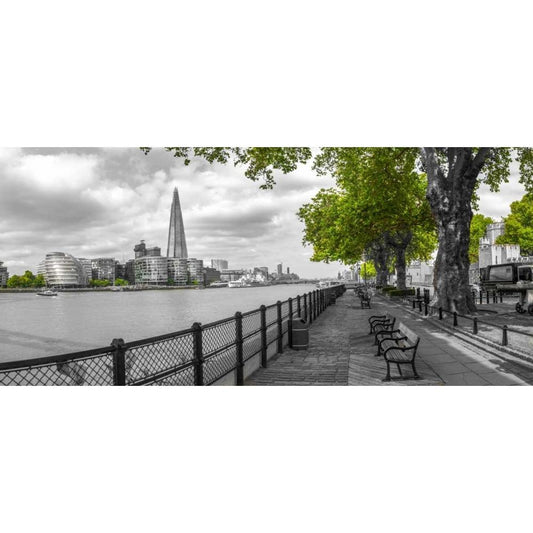 Thames promenade with The Shard in background, London, UK Black Modern Wood Framed Art Print with Double Matting by Frank, Assaf