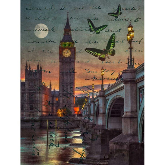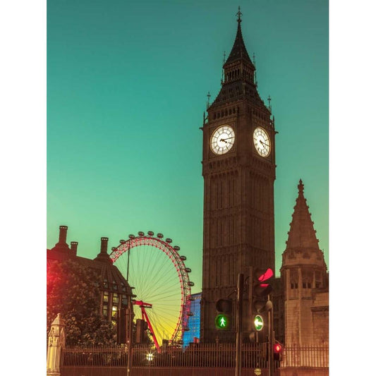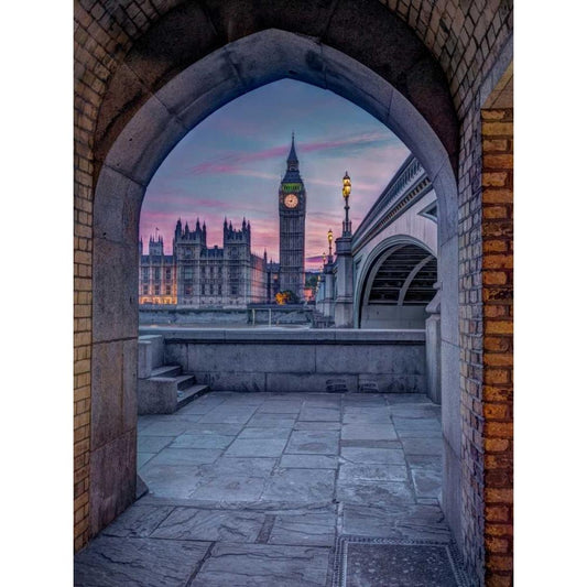 View of Westminster Abby and Big Ben from Thames promenade arch, London, UK Black Modern Wood Framed Art Print with Double Matting by Frank, Assaf