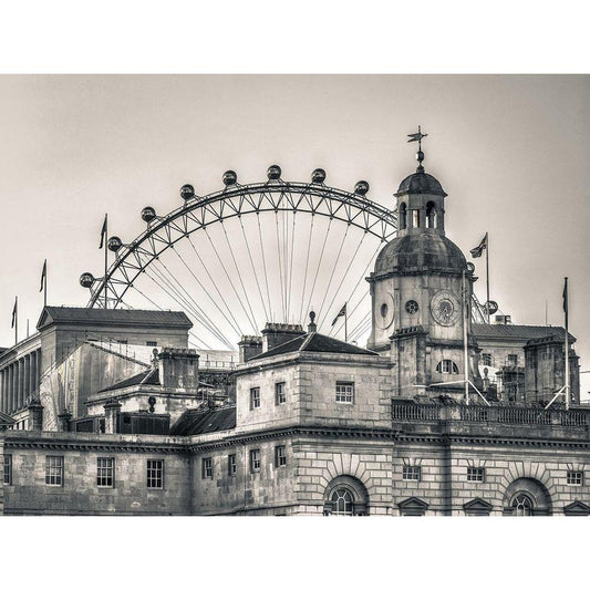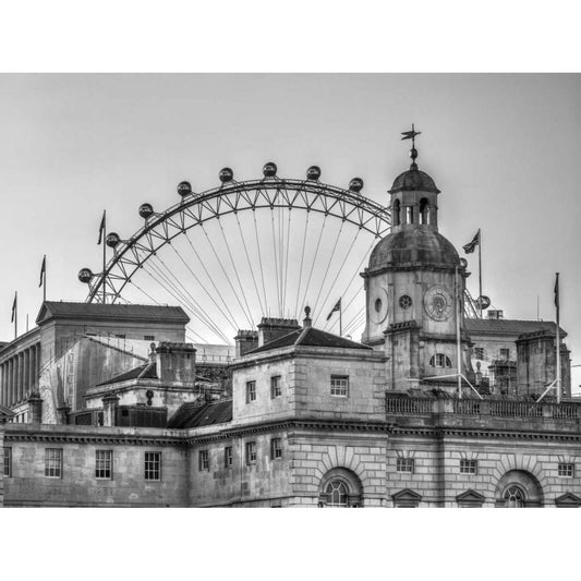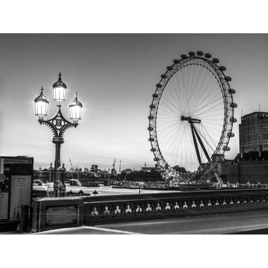 Street lamp on Westminster Bridge with London Eye in background, London, UK Black Modern Wood Framed Art Print with Double Matting by Frank, Assaf