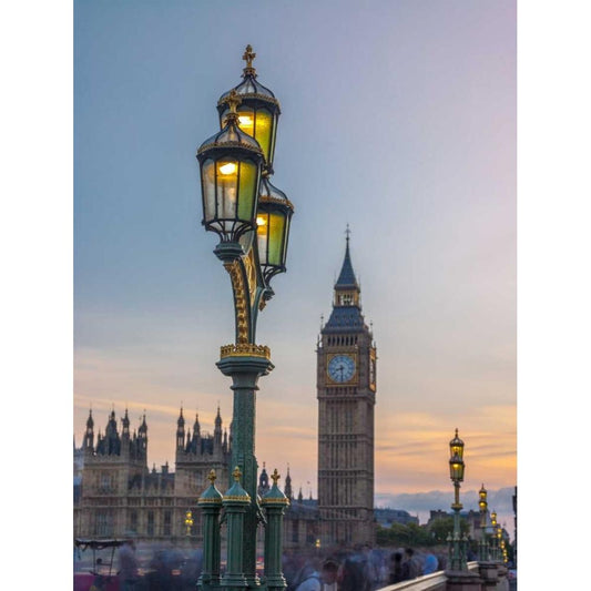 Street lamp with Big Ben, London, UK, FTBR-1919 Black Modern Wood Framed Art Print with Double Matting by Frank, Assaf