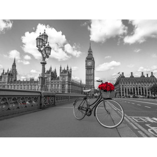 Bicycle with bunch of flowers on Westminster Bridge, London, UK Black Modern Wood Framed Art Print with Double Matting by Frank, Assaf