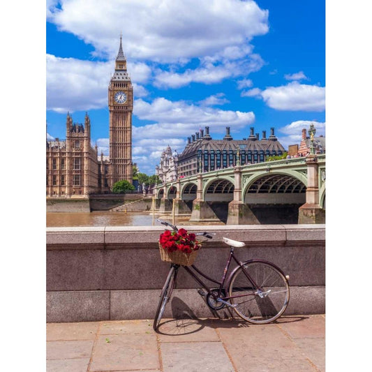 Bunch of Roses on a bicycle agaisnt Westminster Abby, London, UK Black Modern Wood Framed Art Print with Double Matting by Frank, Assaf