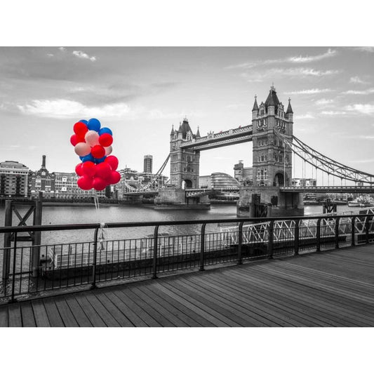 Balloons on promenade near Tower bridge, London, UK Black Modern Wood Framed Art Print with Double Matting by Frank, Assaf