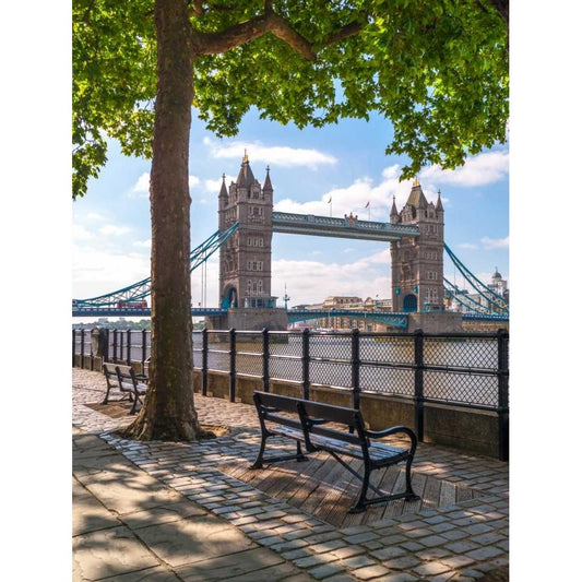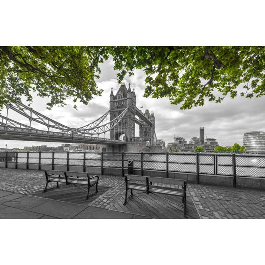 Thames promenade with Tower bridge in background, London, UK Black Modern Wood Framed Art Print with Double Matting by Frank, Assaf