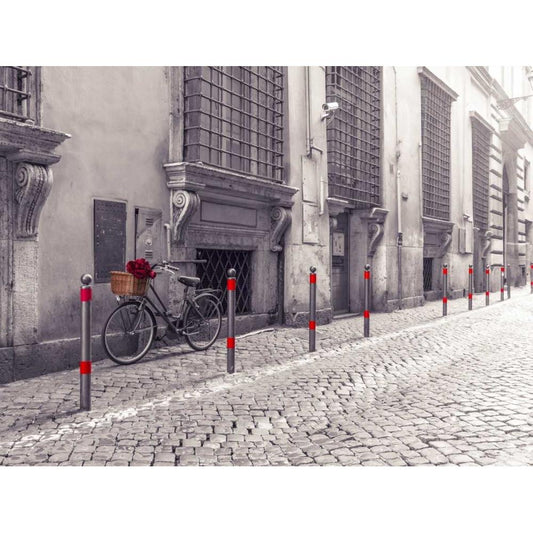 Bunch of roses on bicycle on old city street of Rome Black Modern Wood Framed Art Print with Double Matting by Frank, Assaf