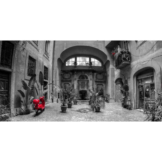 Old Fashioned house with potted plants and scooter, Rome, Italy Black Modern Wood Framed Art Print with Double Matting by Frank, Assaf