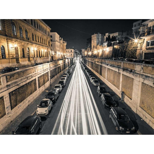 Strip Lights on road, Rome, Italy Black Modern Wood Framed Art Print with Double Matting by Frank, Assaf