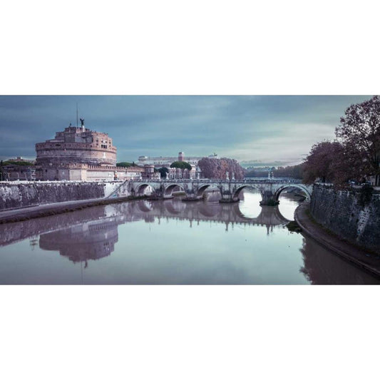 Saint Angelo bridge and Tiber River, Rome, Italy Black Modern Wood Framed Art Print with Double Matting by Frank, Assaf