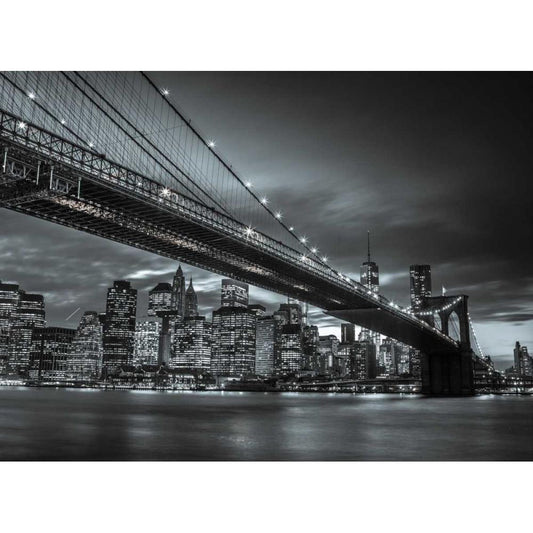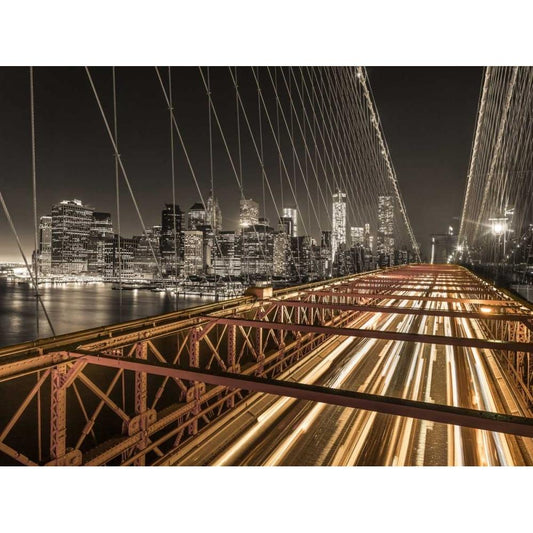 Brooklyn Bridge in evening, New York Black Modern Wood Framed Art Print with Double Matting by Frank, Assaf