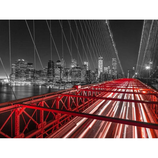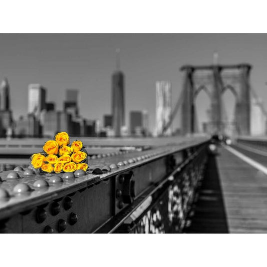 Bunch of roses on Brooklyn Bridge, New York Black Modern Wood Framed Art Print with Double Matting by Frank, Assaf