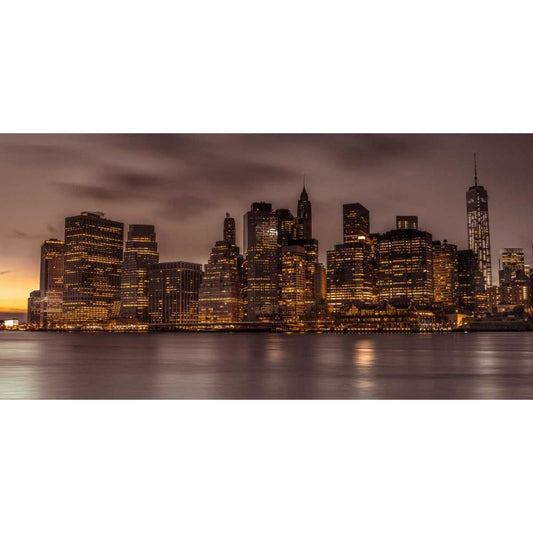 Evening shot of Lower Manhattan skyline, New York Black Modern Wood Framed Art Print with Double Matting by Frank, Assaf
