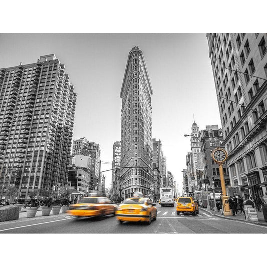 Yellow Taxis- Flatiron Building-Manhattan-New York Black Modern Wood Framed Art Print with Double Matting by Frank, Assaf