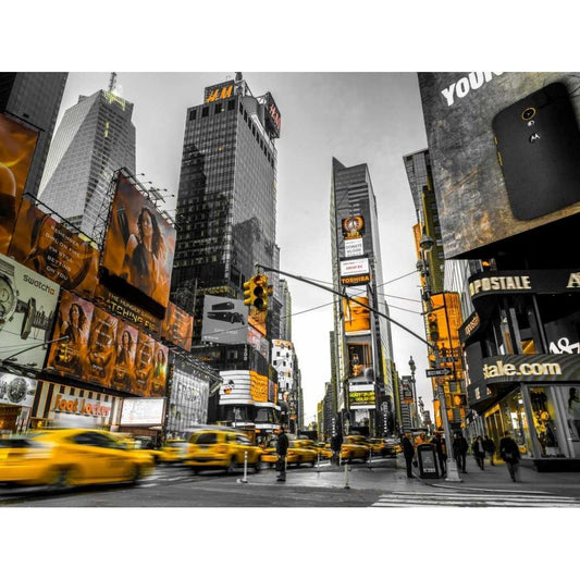 Taxi on broadway, New York Black Modern Wood Framed Art Print with Double Matting by Frank, Assaf