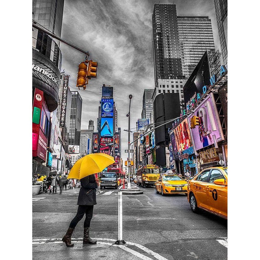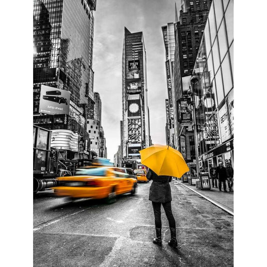 Man with yellow umbrella at Times square, New York Black Modern Wood Framed Art Print with Double Matting by Frank, Assaf