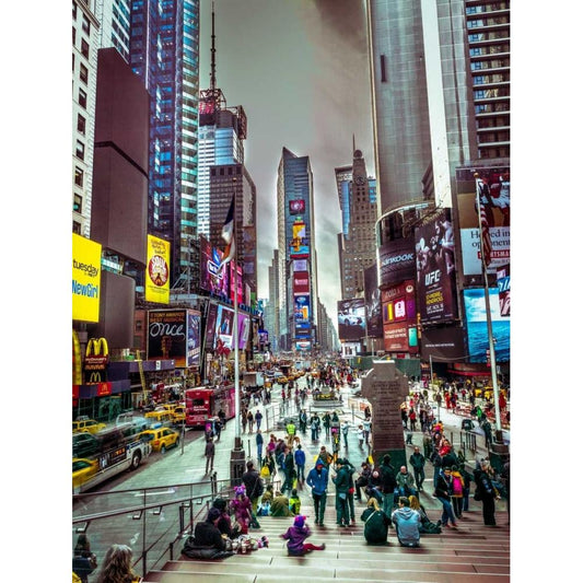 Commuters on busy Broadway in Ney York City near Times Square Black Modern Wood Framed Art Print with Double Matting by Frank, Assaf