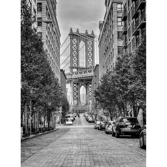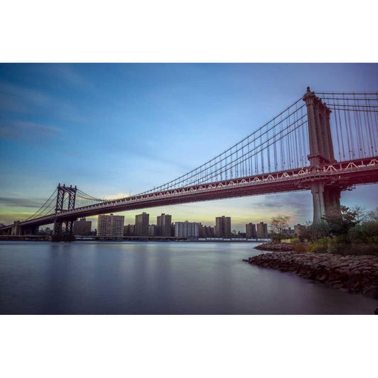 Manhattan Bridge seen from the Dumbo neighborhood in Brooklyn, New York Black Modern Wood Framed Art Print with Double Matting by Frank, Assaf