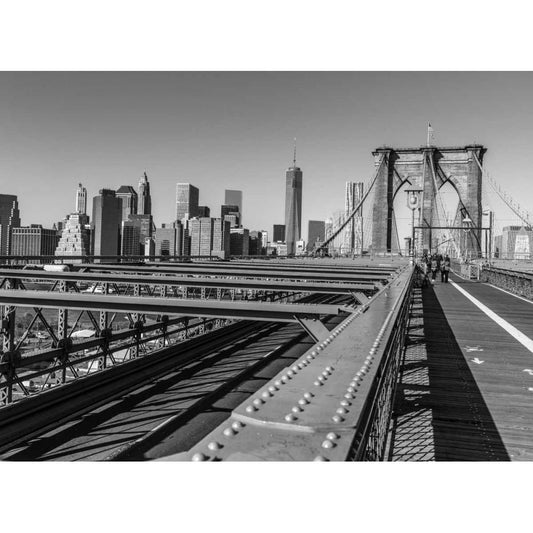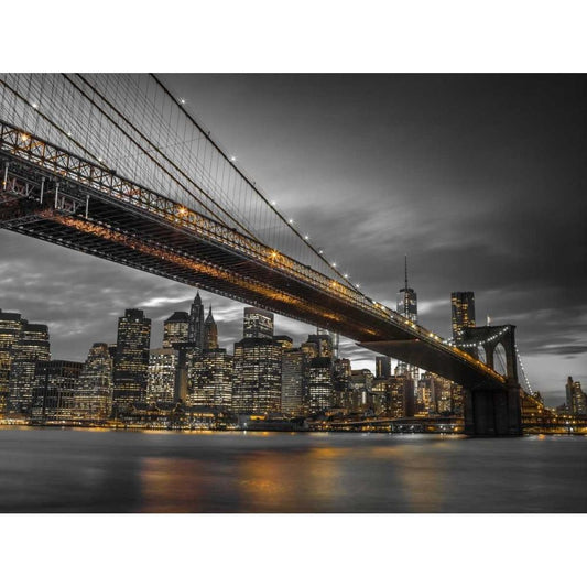 View from Brooklyn bridge with New York skyline in background Black Modern Wood Framed Art Print with Double Matting by Frank, Assaf