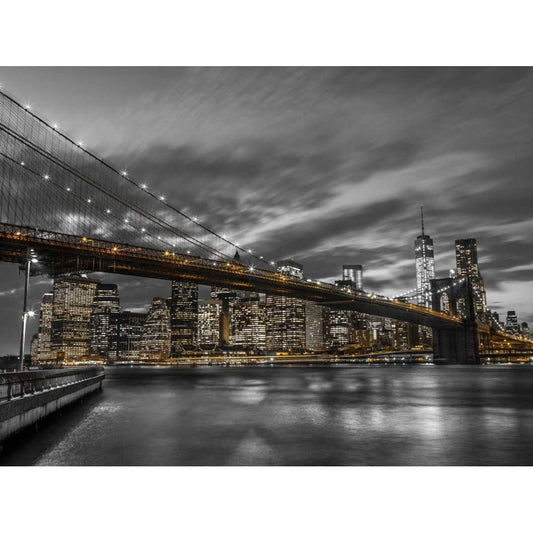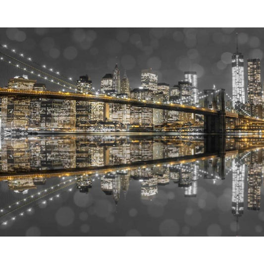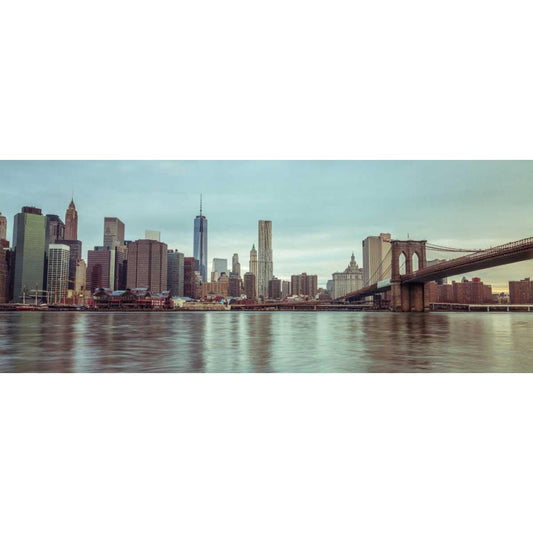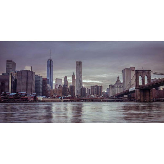 Lower Manhattan skyline with Brooklyn Bridge, New York Black Modern Wood Framed Art Print with Double Matting by Frank, Assaf