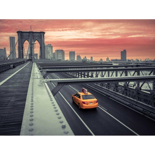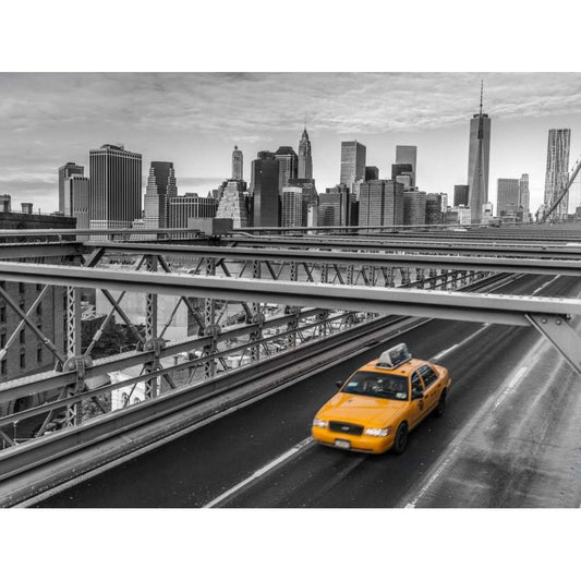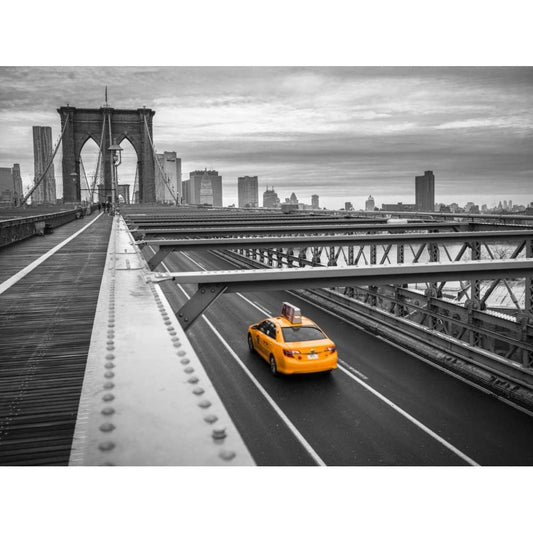 Taxi on Brooklyn Bridge, New York Black Modern Wood Framed Art Print with Double Matting by Frank, Assaf