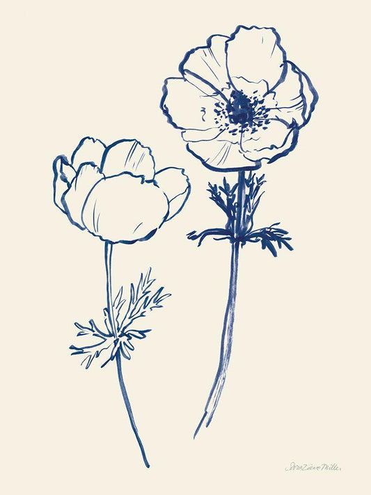 Ink Anemones II White Modern Wood Framed Art Print with Double Matting by Miller, Sara Zieve