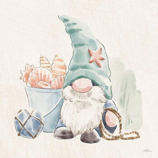 Beach Gnomes I White Modern Wood Framed Art Print with Double Matting by Penner, Janelle