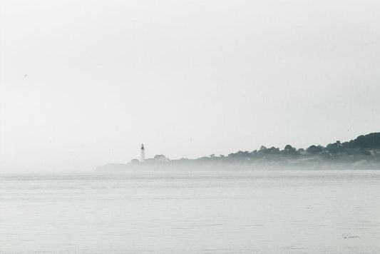 Foggy Lighthouse White Modern Wood Framed Art Print with Double Matting by Schlabach, Sue