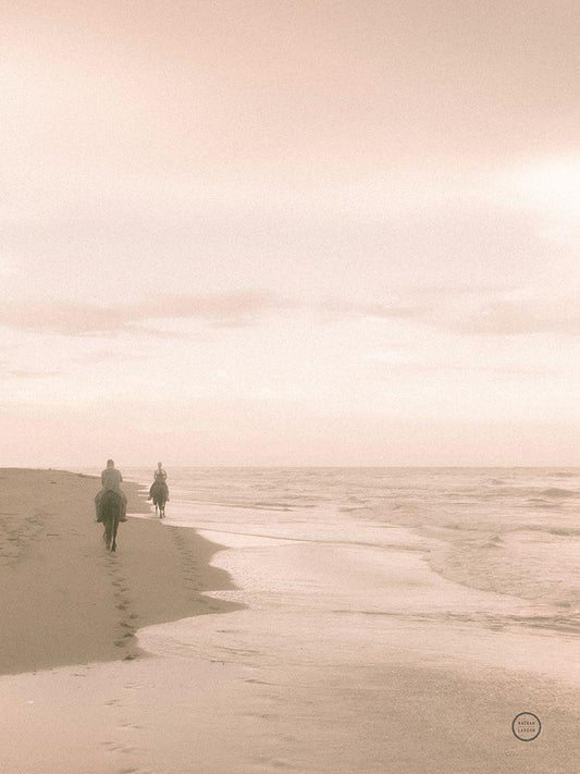 Horses on the Beach Crop White Modern Wood Framed Art Print with Double Matting by Larson, Nathan