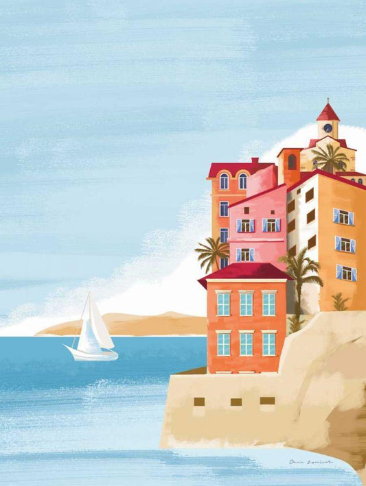 Surf and Sun I White Modern Wood Framed Art Print with Double Matting by Charro, Mercedes Lopez