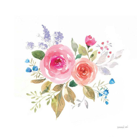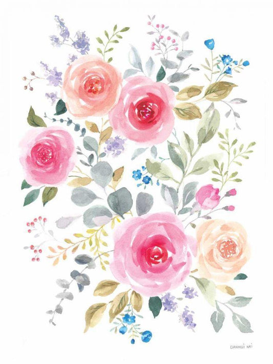 Lush Roses I White Modern Wood Framed Art Print with Double Matting by Nai, Danhui