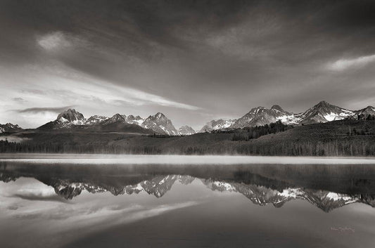 Little Redfish Lake Morning I White Modern Wood Framed Art Print with Double Matting by Majchrowicz, Alan