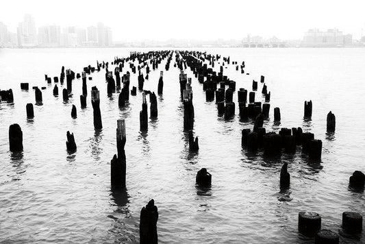 Memory Piers White Modern Wood Framed Art Print with Double Matting by Aledanda