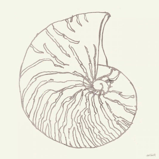 Coastal Breeze Shell Sketches VII Silver White Modern Wood Framed Art Print with Double Matting by Tavoletti, Anne