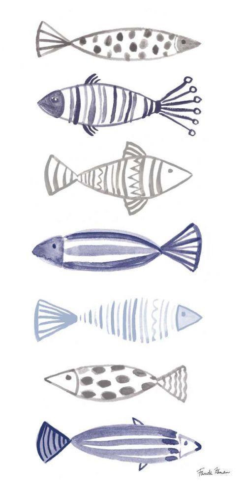 A School of Fish I White Modern Wood Framed Art Print with Double Matting by Zaman, Farida