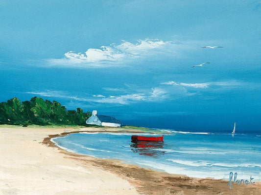 Hameau au bord de la baie White Modern Wood Framed Art Print with Double Matting by Flanet, Frederic