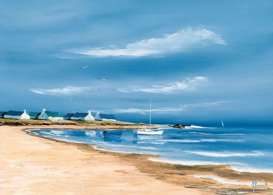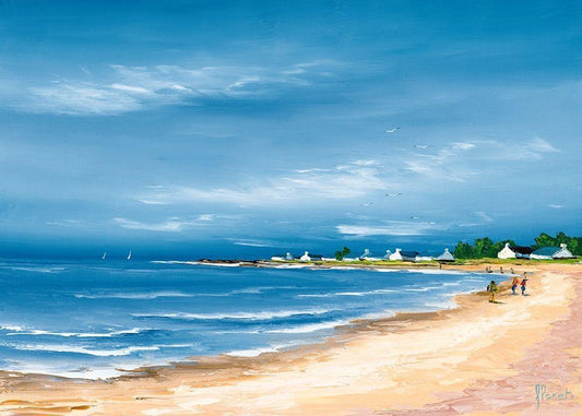 Autumn Morning at the Beach White Modern Wood Framed Art Print with Double Matting by Yang, Jianping
