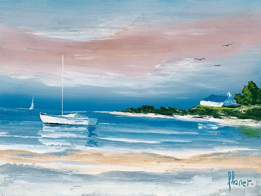 Promenade sur la baie White Modern Wood Framed Art Print with Double Matting by Flanet, Frederic