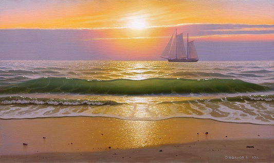 Mysterious sunset White Modern Wood Framed Art Print with Double Matting by Stepanov, Alexander