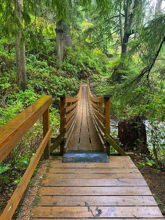 Forest Bridge III White Modern Wood Framed Art Print with Double Matting by Grayscale