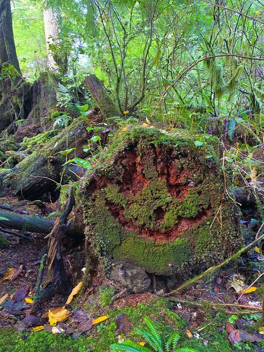 Forest Happy Face I White Modern Wood Framed Art Print with Double Matting by Grayscale