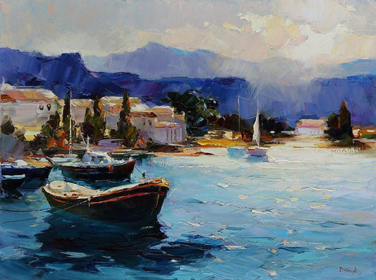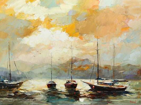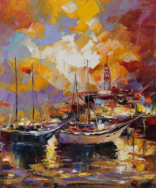 Boats by Sunset White Modern Wood Framed Art Print with Double Matting by Bond
