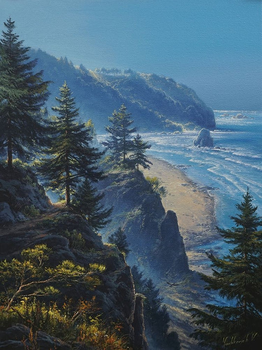 Sea Coast White Modern Wood Framed Art Print with Double Matting by Yushkevich, Viktor
