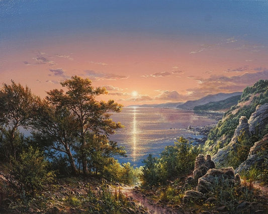 Sunset on the Sea White Modern Wood Framed Art Print with Double Matting by Yushkevich, Viktor
